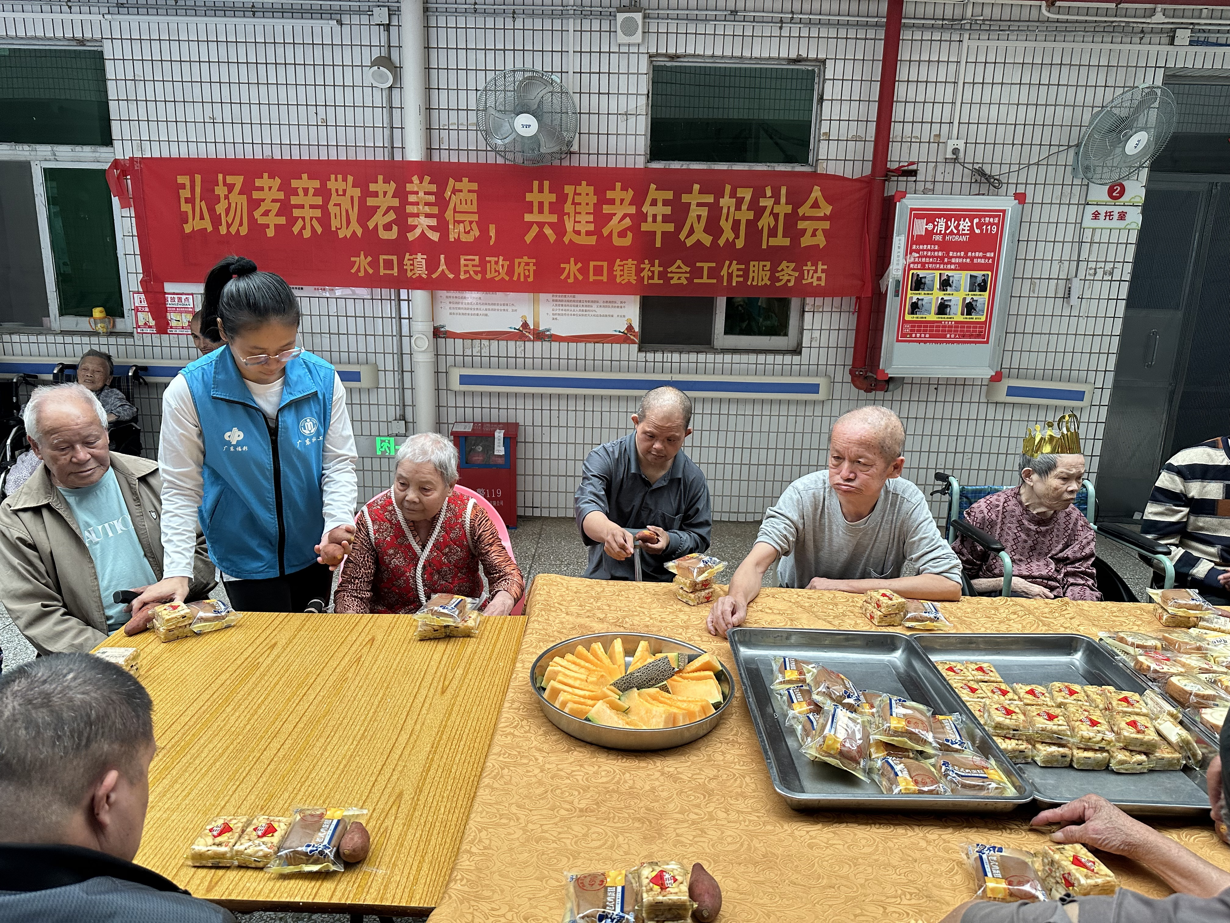 金秋十月爽,九九話重陽。在傳統(tǒng)敬老佳節(jié)重陽節(jié)來臨之際,為弘揚(yáng)中華民族尊老、敬老、愛老、助老的傳統(tǒng)美德,豐富轄區(qū)老年人的精神文化生活,水口鎮(zhèn)社會(huì)工作服務(wù)站在水口鎮(zhèn)頤養(yǎng)院開展了主題為“弘揚(yáng)孝親敬老美德,共建老年友好社會(huì)”的重陽節(jié)敬老活動(dòng),以實(shí)際行動(dòng)傳遞對(duì)老年人的深切關(guān)懷。