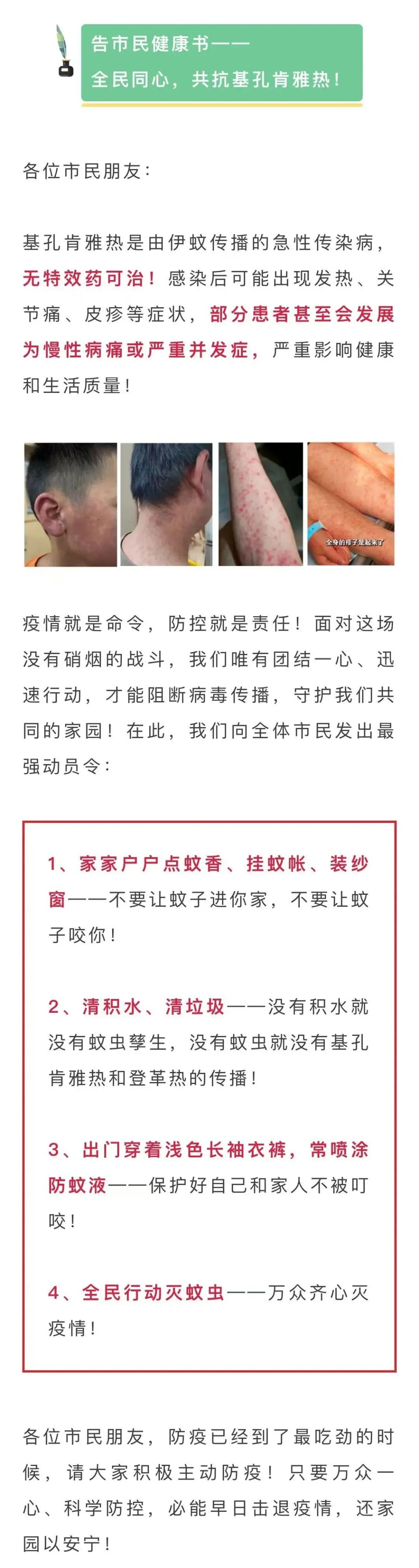 告市民健康書——全民同心,共抗基孔肯雅熱!