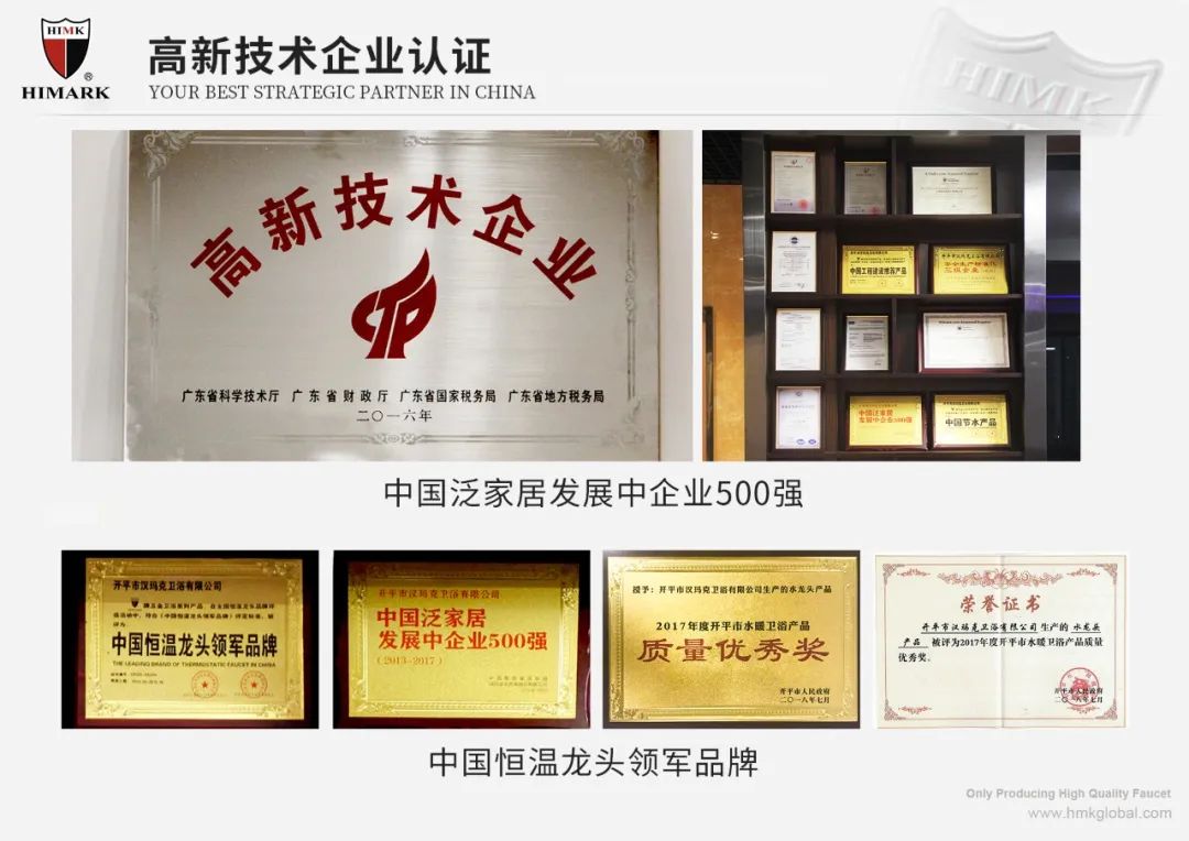 漢瑪克堅(jiān)持以一流的技術(shù)、一流的設(shè)計、一流的工藝鑄就一流的產(chǎn)品、創(chuàng)造一流的品牌,取信于廣大客戶,產(chǎn)品暢銷全球40多個國家,先后榮獲“中國泛家居發(fā)展中企業(yè)500強(qiáng)”“中國恒溫龍頭領(lǐng)軍品牌”“中國十大五金龍頭品牌”中國節(jié)水產(chǎn)品”“中國工程建設(shè)推薦產(chǎn)品”等榮譽(yù)稱號。