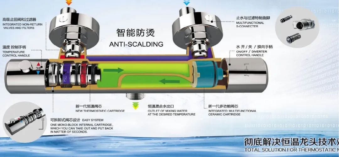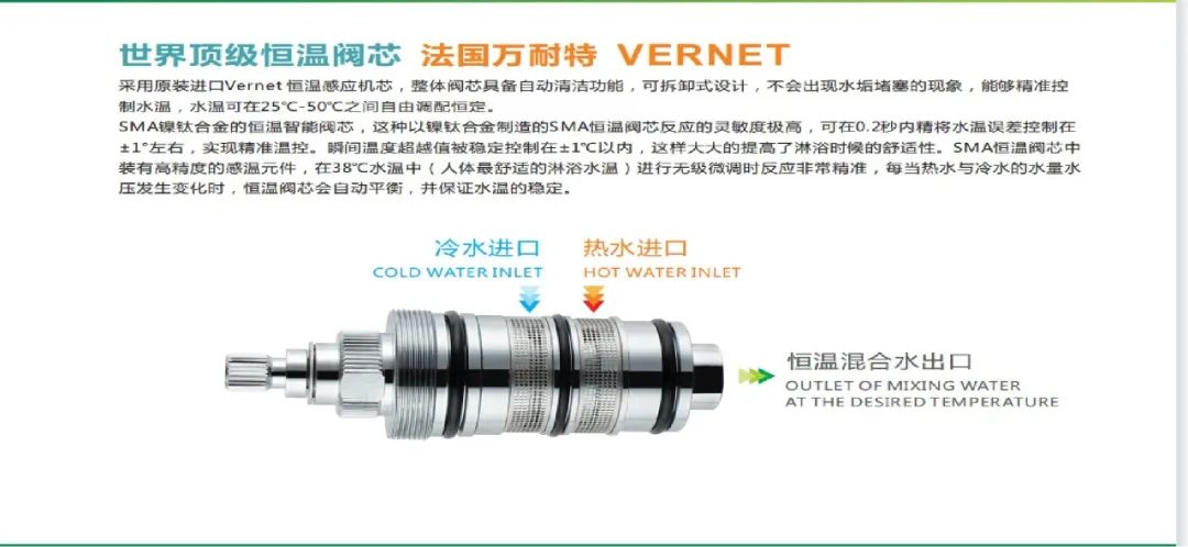 可拆卸式恒溫閥芯設(shè)計,使用行業(yè)內(nèi)最好的靈敏感應(yīng)原件,確保閥芯可以長時間使用而沒有后顧之憂。