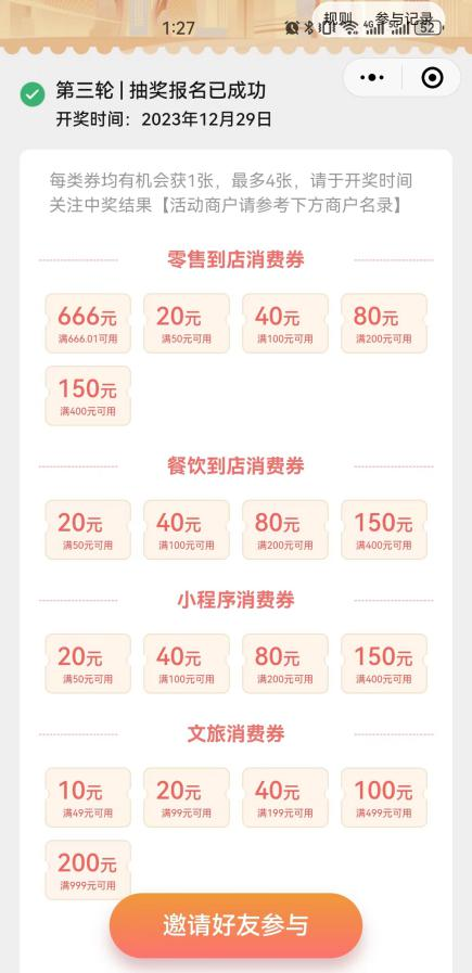 *12月29日7:00—9:00起陸續(xù)開獎(jiǎng),公眾可在“廣東消費(fèi)券”微信小程序查詢中簽結(jié)果。