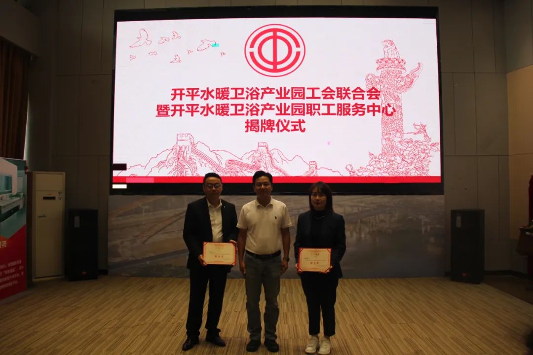 司徒錦泉為開平水暖衛(wèi)浴產(chǎn)業(yè)園工會(huì)聯(lián)合會(huì)第一屆委員會(huì)委員頒發(fā)當(dāng)選證書