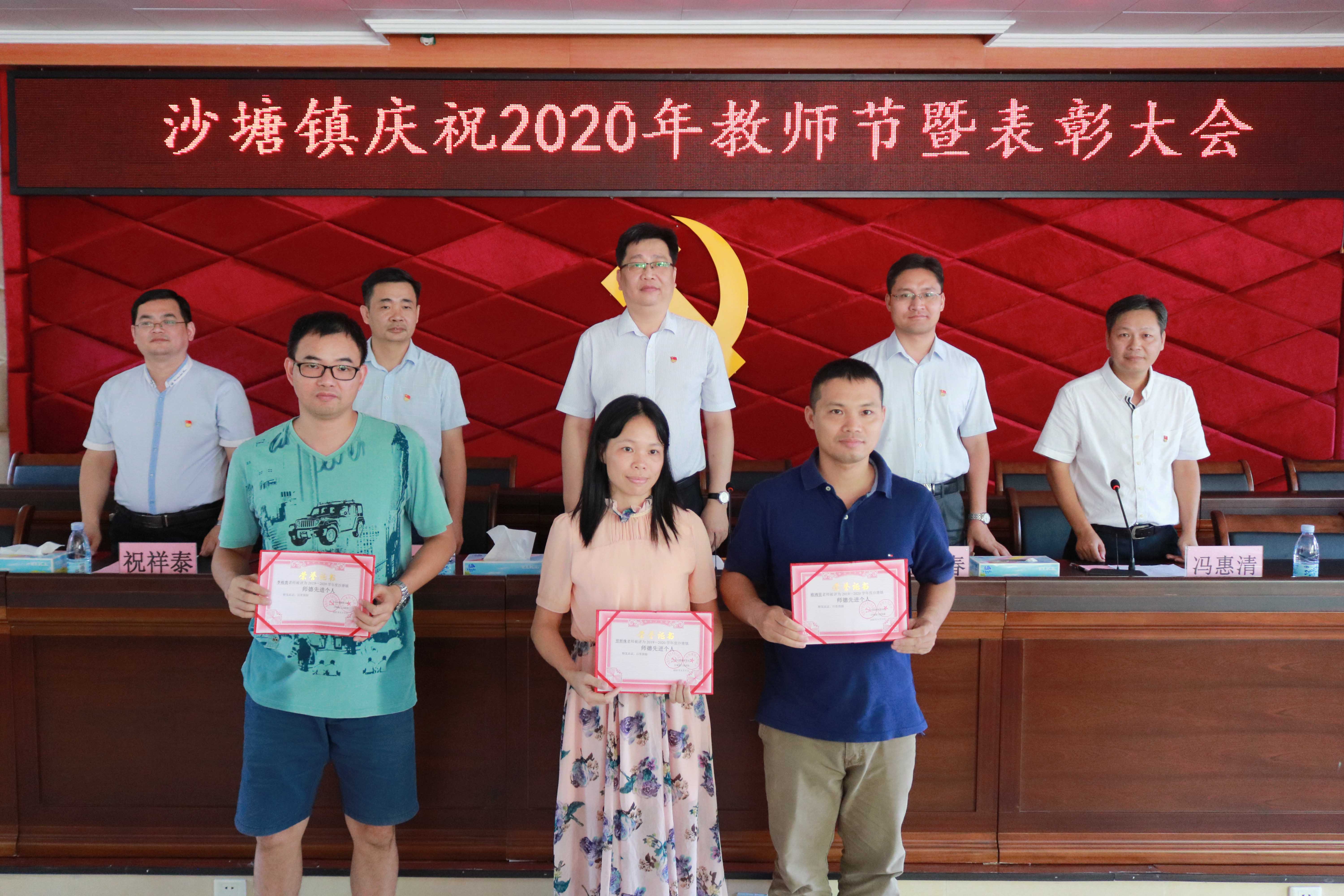 會議通報(bào)表揚(yáng)了開平市先進(jìn)教師、開平市優(yōu)秀班主任、開平市師德先進(jìn)個人、開平市尊師先進(jìn)個人、沙塘鎮(zhèn)安全管理工作標(biāo)兵單位、沙塘鎮(zhèn)安全管理工作先進(jìn)單位、沙塘鎮(zhèn)德育工作先進(jìn)單位、沙塘鎮(zhèn)教學(xué)工作先進(jìn)單位、沙塘鎮(zhèn)先進(jìn)教師、沙塘鎮(zhèn)優(yōu)秀班主任、沙塘鎮(zhèn)師德先進(jìn)個人等在教育教學(xué)工作中作出突出貢獻(xiàn)的先進(jìn)集體和優(yōu)秀教師。