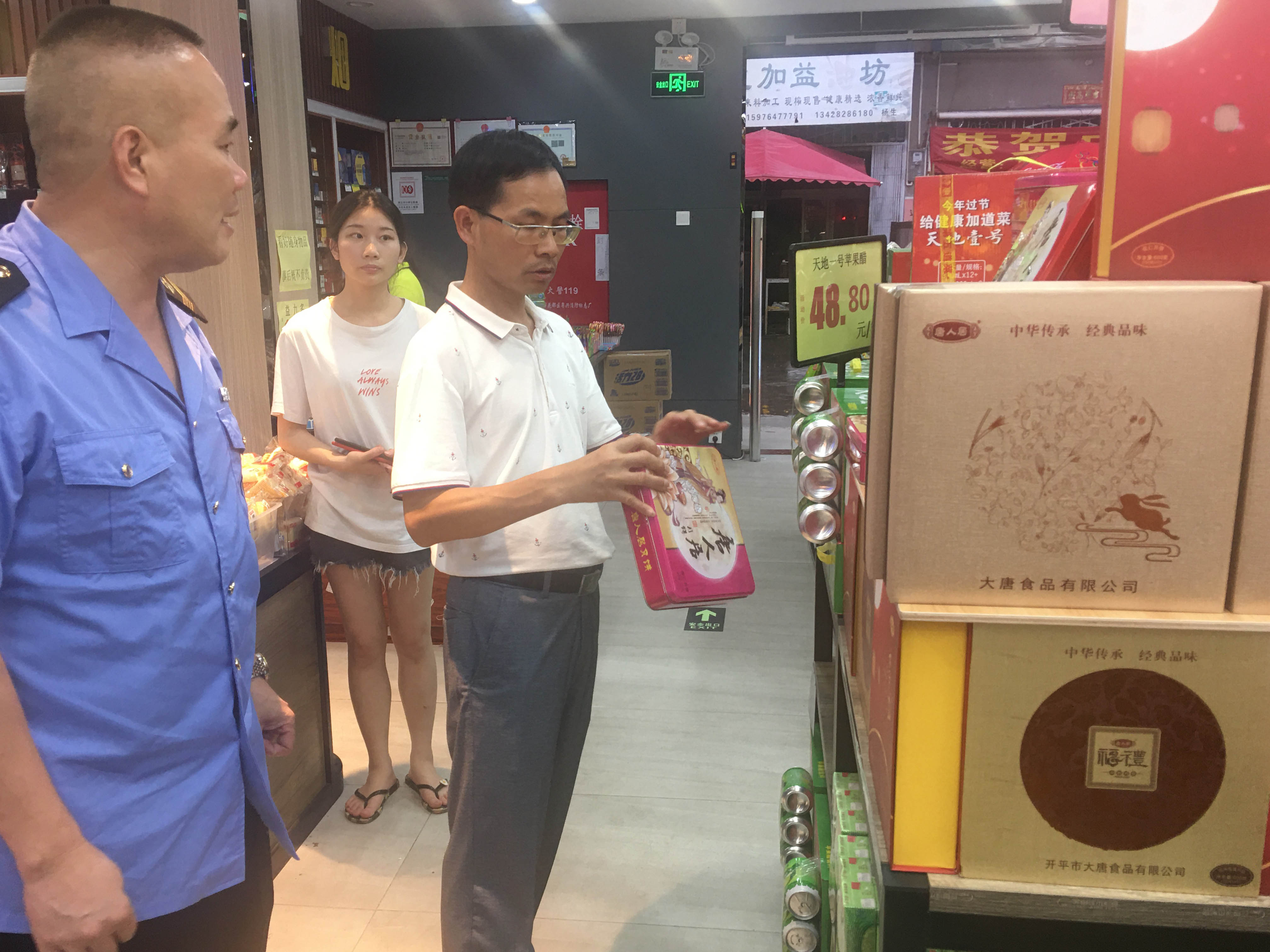 檢查組先后對(duì)轄區(qū)內(nèi)幾家大型超市進(jìn)行走訪檢查,認(rèn)真檢查月餅、酒類等節(jié)日消費(fèi)商品及米面油等大眾商品的外包裝標(biāo)簽標(biāo)識(shí)、保質(zhì)期、進(jìn)貨渠道等信息;重點(diǎn)查看食品采購索證索票制度、從業(yè)人員健康證明等配備情況。對(duì)檢查發(fā)現(xiàn)的問題,要求經(jīng)營單位做好記錄,期限完成整改,切實(shí)保障群眾飲食安全。