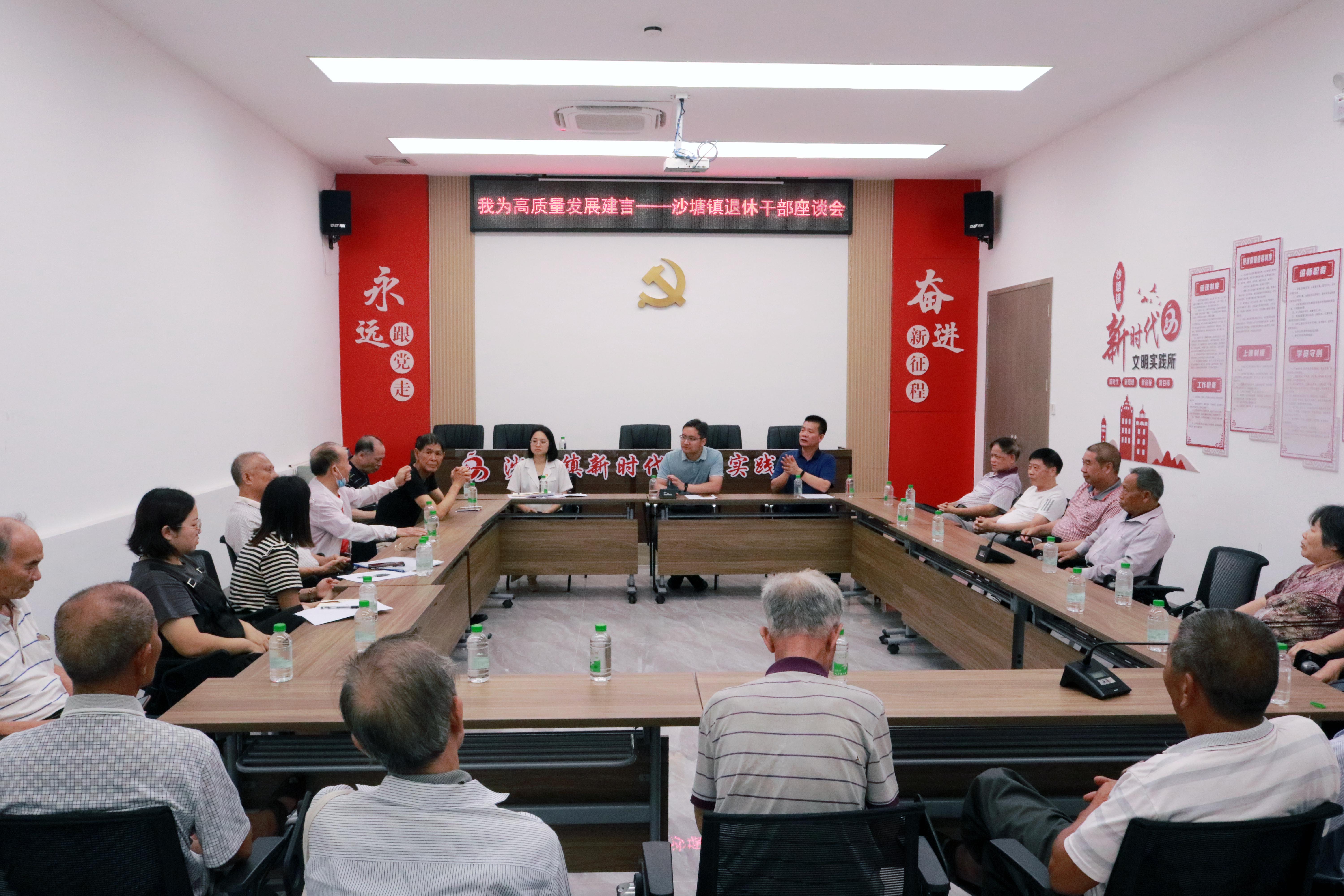 參觀結(jié)束后,老同志們在沙塘鎮(zhèn)黨群服務中心進行座談交流,提出了不少真知灼見,大家一致認為沙塘鎮(zhèn)領(lǐng)導班子團結(jié)務實、干部奮勇實干、鎮(zhèn)村面貌煥然一新,近年來各項工作取得的成績令人歡欣鼓舞。大家紛紛表示,今后將一如既往地關(guān)心支持沙塘經(jīng)濟社會發(fā)展,自覺當好黨委、政府的耳目喉舌,為推動沙塘經(jīng)濟社會高質(zhì)量發(fā)展貢獻“銀發(fā)”力量。