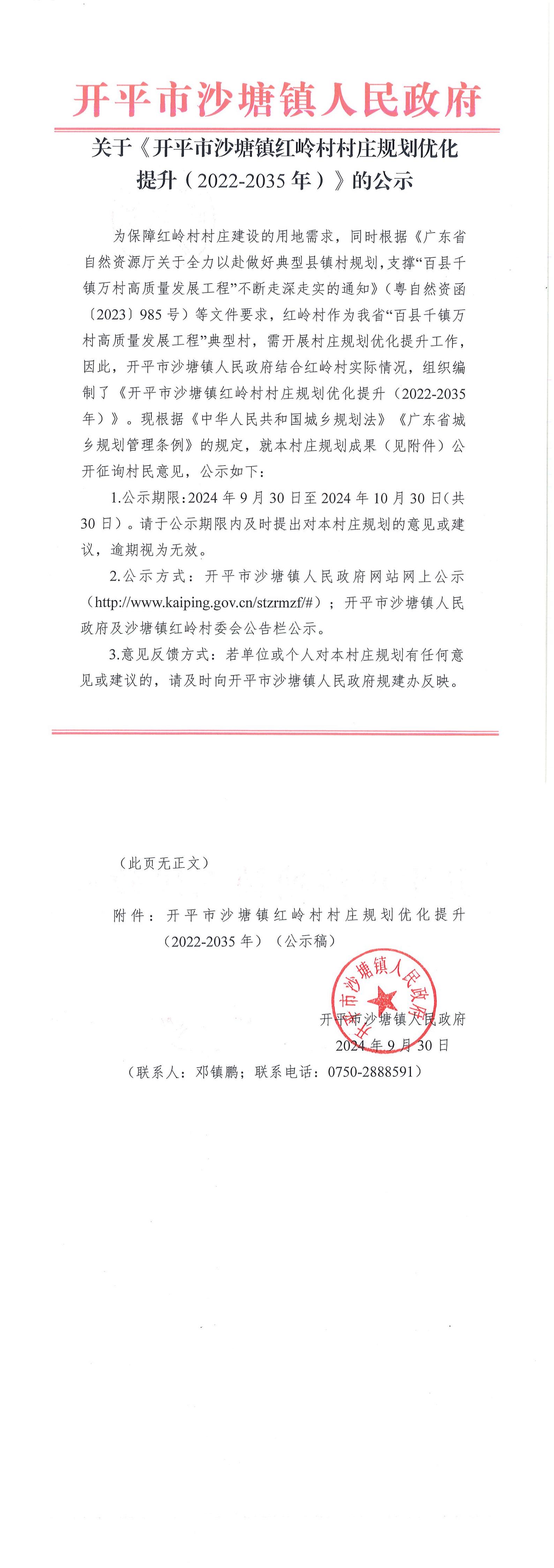附件:開平市沙塘鎮(zhèn)紅嶺村村莊規(guī)劃優(yōu)化提升(2022-2035年)(公示稿)
