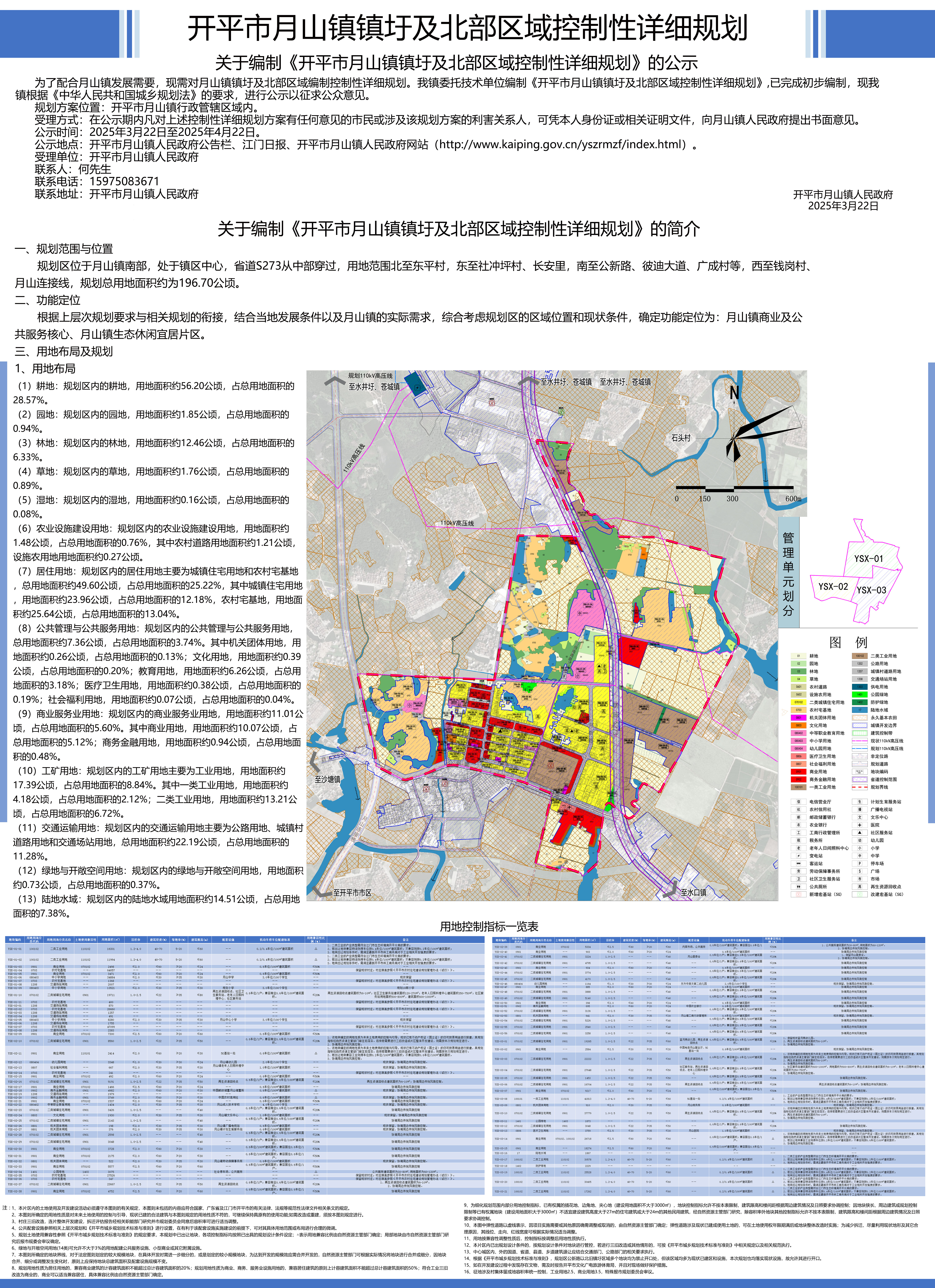 為了配合月山鎮(zhèn)發(fā)展需要,現(xiàn)需對(duì)月山鎮(zhèn)鎮(zhèn)圩及北部區(qū)域編制控制性詳細(xì)規(guī)劃。我鎮(zhèn)委托技術(shù)單位編制《開平市月山鎮(zhèn)鎮(zhèn)圩及北部區(qū)域控制性詳細(xì)規(guī)劃》,已完成初步編制,現(xiàn)我鎮(zhèn)根據(jù)《中華人民共和國城鄉(xiāng)規(guī)劃法》的要求,進(jìn)行公示以征求公眾意見。 規(guī)劃方案位置:開平市月山鎮(zhèn)行政管轄區(qū)域內(nèi)。 受理方式:在公示期內(nèi)凡對(duì)上述控制性詳細(xì)規(guī)劃方案有任何意見的市民或涉及該規(guī)劃方案的利害關(guān)系人,可憑本人身份證或相關(guān)證明文件,向月山鎮(zhèn)人民政府提出書面意見。 公示時(shí)間:2025年3月22日至2025年4月22日。 公示地點(diǎn):開平市月山鎮(zhèn)人民政府公告欄、江門日?qǐng)?bào)、開平市月山鎮(zhèn)人民政府網(wǎng)站(http://m.mguide.com.cn/yszrmzf/index.html)。 受理單位:開平市月山鎮(zhèn)人民政府 聯(lián)系人:何先生 聯(lián)系電話:0750-2786089 聯(lián)系地址:開平市月山鎮(zhèn)人民政府 開平市月山鎮(zhèn)人民政府 2025年3月22日