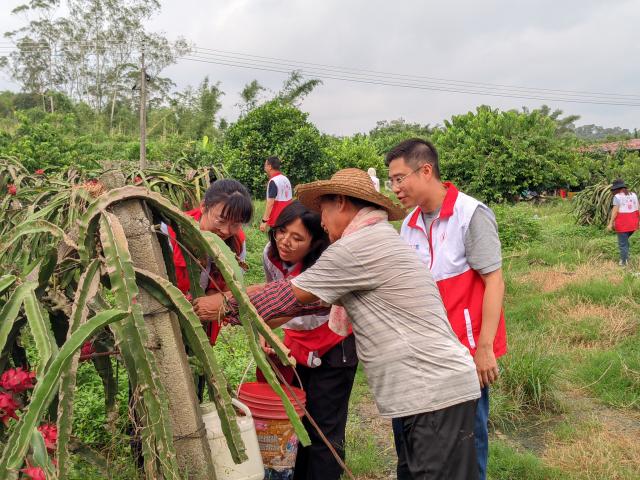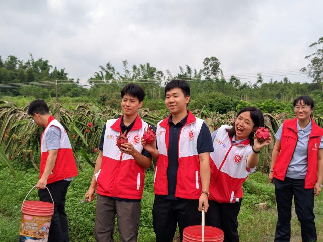鄉(xiāng)約振興”團建共建活動,用青春力量賦能鄉(xiāng)村發(fā)展。開平市煙草專賣局副局長賴玉華、恩平市煙草專賣局副經理馬哲、蜆岡鎮(zhèn)黨委委員、團委書記李鵬輝及各單位青年干部近40人參加活動。 活動伊始,果園技術員為青年干部講解火龍果的種植管理、優(yōu)質果篩選標準和采摘技巧,并作現場示范?!按蠹铱春昧耍烧瘕埞p拿輕放,從果實底部輕輕一剪就能摘下,這樣既不傷果實也不傷枝條……”在技術員的指導下,青年干部們很快掌握要領,分組協作,手持剪刀和籃筐,穿梭于火龍果藤蔓之間,認真挑選成熟飽滿的果實。采摘、搬運、分揀、裝袋等環(huán)節(jié)推進有條不紊,充分展現不怕苦、不怕累的優(yōu)良作風。盡管汗水濕透了衣衫,但每個人臉上都洋溢著勞動的喜悅。經過一個多小時的努力,就采摘了近500斤的火龍果,有效緩解果農采摘壓力,助力農產品上市銷售。 青年干部紛紛表示,這次助農實踐讓大家從文件里的“鄉(xiāng)村振興”走進了田間地頭的“致富果”實現從理論認知到情感認同的升華。他們將以此次活動為新起點,把對“三農”工作的深切感悟轉化為為群眾辦實事、解難題的實際行動。 火龍果作為“蜆岡優(yōu)品”特色農產品,憑借其優(yōu)良品質和獨特口感,深受大眾喜愛。此次聯合助農活動不僅提升了“蜆岡優(yōu)品”品牌知名度和影響力,推動地方特色農業(yè)產業(yè)發(fā)展,更進一步加強跨區(qū)域團組織之間的交流合作,為青年干部搭建更廣闊的學習交流平臺。 下一步,蜆岡鎮(zhèn)團委將繼續(xù)以“蜆智匯”系列活動為核心抓手,策劃更多貼合實際、富有實效的青年助農活動,吸引更多青年干部投身鄉(xiāng)村振興主戰(zhàn)場,為推動“百縣千鎮(zhèn)萬村高質量發(fā)展工程”貢獻青春力量。