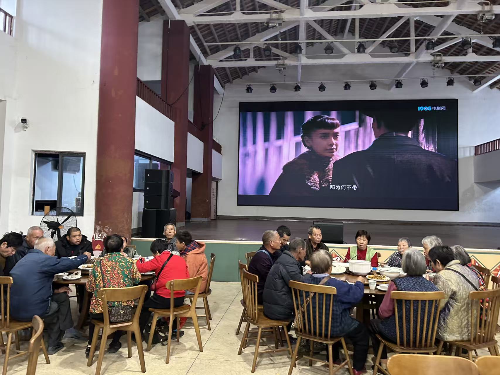 蜆岡鎮(zhèn)長(zhǎng)者飯?zhí)媒柚槍?zhèn)特色文化平臺(tái)——“蜆岡煲仔飯劇場(chǎng)?僑文化僑心館”的專業(yè)影音設(shè)備,老人們集中觀看了紅色經(jīng)典影片《建黨偉業(yè)》。銀幕上,革命先輩為國家命運(yùn)奔走吶喊、為理想信念英勇抗?fàn)幍漠嬅?,深深打?dòng)了在場(chǎng)每一位長(zhǎng)者。觀影過程中,老人們?nèi)褙炞?,不時(shí)為革命先輩的無畏精神動(dòng)容,現(xiàn)場(chǎng)氛圍莊重而熱烈。這部影片不僅讓老人們重溫了中國共產(chǎn)黨的誕生歷程,更從革命先輩的事跡中汲取了精神力量,堅(jiān)定了感恩黨、跟黨走的信念。