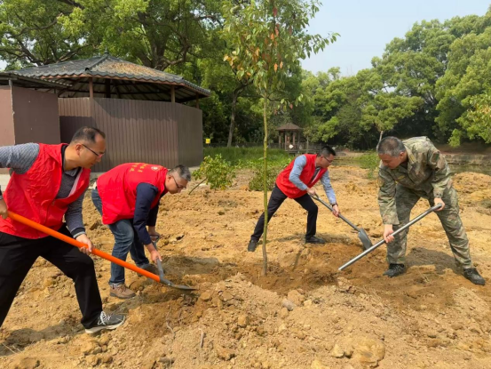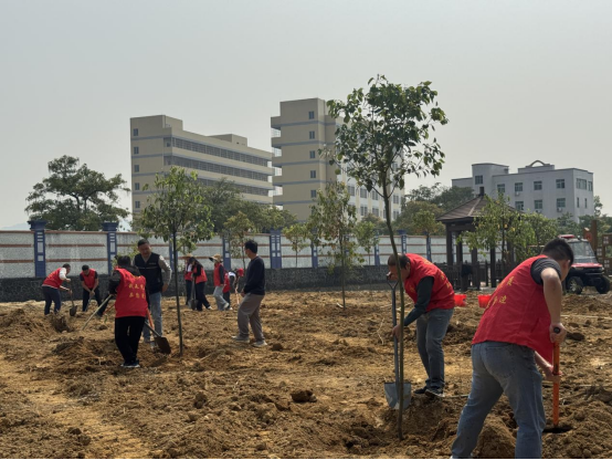 活動現(xiàn)場呈現(xiàn)一派熱火朝天的勞動景象,黨員干部們干勁十足、熱情高漲,有的搬運樹苗,有的填土壓實,有的修剪枝葉,以實際行動為典型村增添綠植、增加生機、提高綠質(zhì)、豐富生態(tài)底色貢獻力量。一株株樟樹苗扎根于牛過塘里,與古樹公園內(nèi)的百年老樟樹相映成趣,為蜆岡鎮(zhèn)的生態(tài)文明建設(shè)注入了新的活力。
