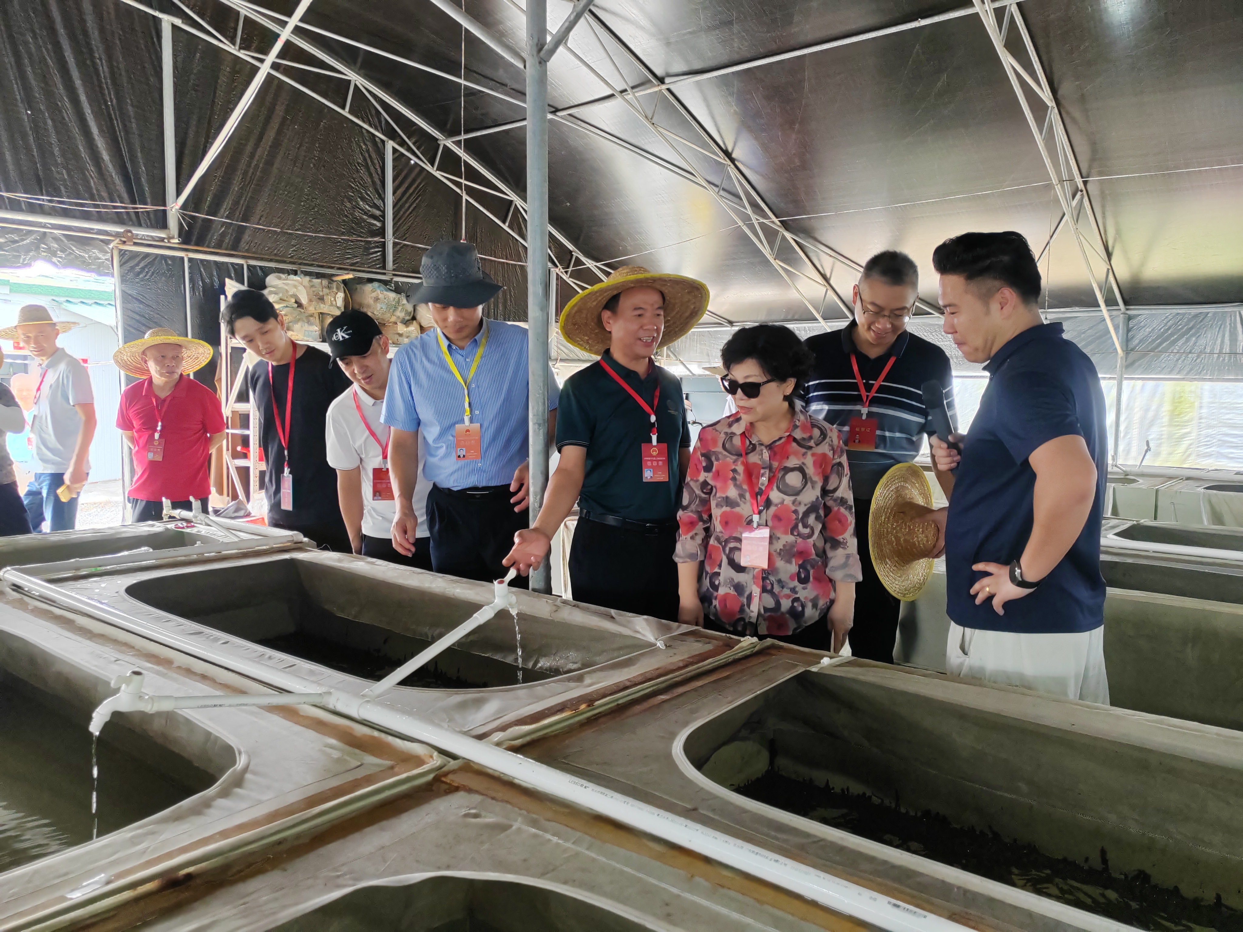 隨后,代表們來(lái)到開(kāi)平市蛭尚生物科技有限公司水蛭養(yǎng)殖基地,調(diào)研典型村培育的特色產(chǎn)業(yè)發(fā)展。作為“蜆岡優(yōu)品”致力推介項(xiàng)目,該基地占地面積達(dá)60余畝,是一家以水蛭養(yǎng)殖繁育回收加工銷售服務(wù)于一體的現(xiàn)代企業(yè),依托本地優(yōu)質(zhì)水源,主要養(yǎng)殖菲牛蛭、日本醫(yī)蛭兩個(gè)品種,年產(chǎn)量約10萬(wàn)公斤,年產(chǎn)值近2000萬(wàn)元。除了輸出帶有蜆岡特色的水蛭產(chǎn)品外,水蛭養(yǎng)殖基地也帶動(dòng)周邊20余名村民就業(yè),人均年增收約4萬(wàn)元。